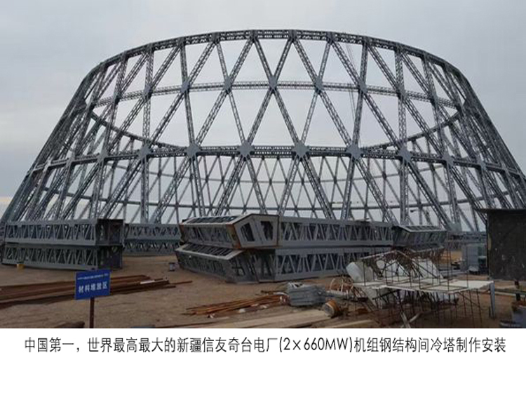中国第一,世界*高*大的新疆信友奇台电厂(2×660MW)机组钢结构间冷塔制作安装1