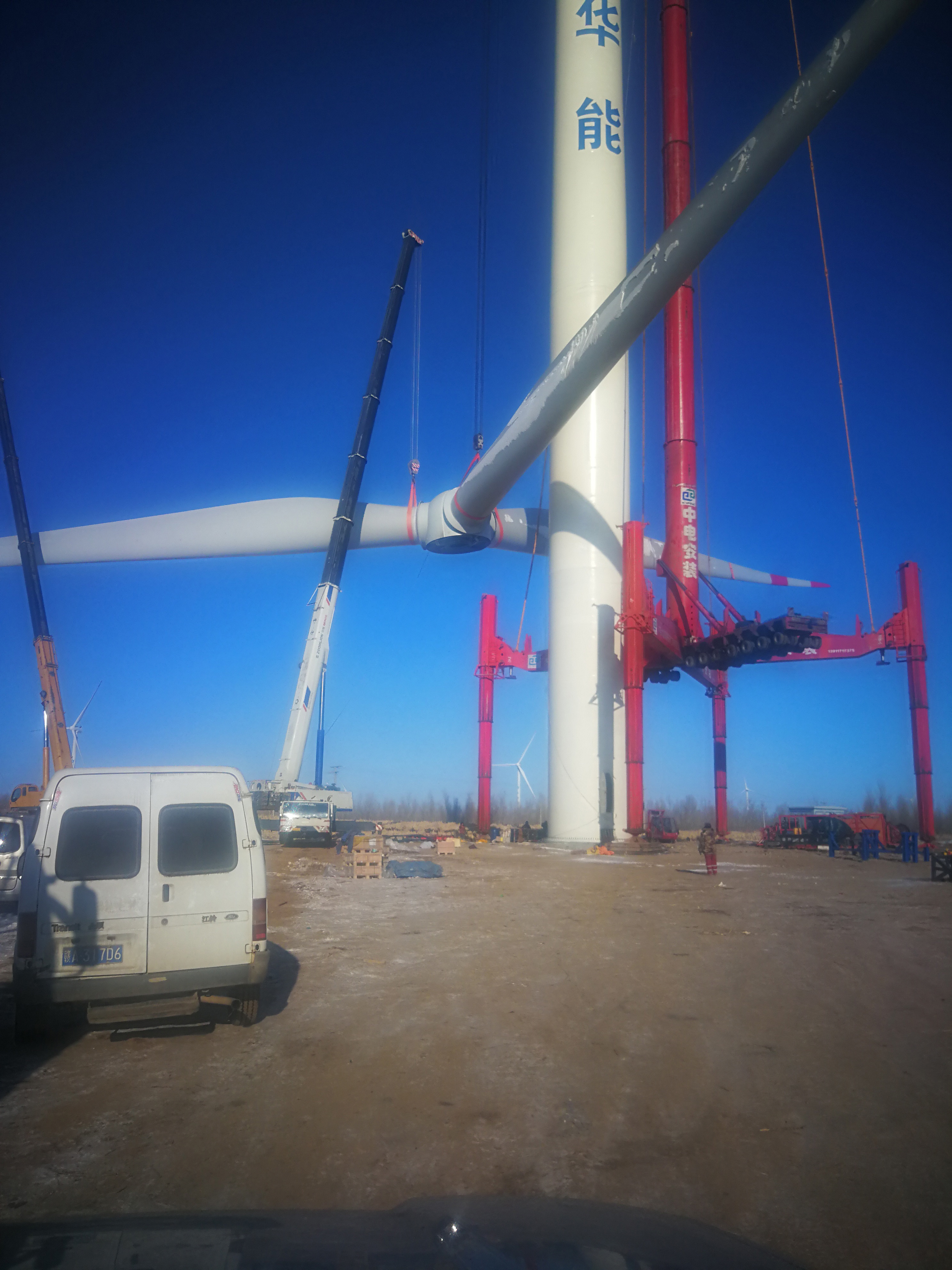 华能蒙东能源开沪风电厂130米塔筒安装