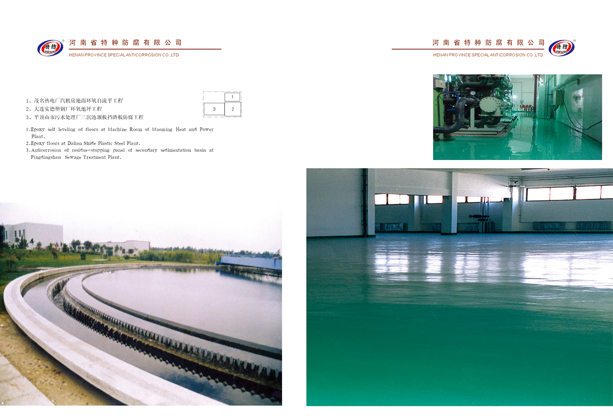 茂名热电厂汽机房地面环氧自流平工程//大连实德塑钢厂环氧地坪工程//平顶山市污水处理厂二沉池堰板挡渣板防腐工程
